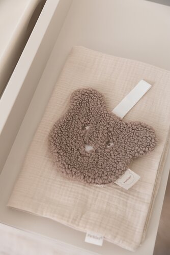 La lingette attache-tétine est un accessoire doux et élégant qui permet de garder la tétine de votre bébé toujours à portée de main. Fabriquée en tissu éponge doux et en tissu teddy moelleux, elle est agréable au toucher et respecte la peau sensible des bébés. Grâce à la boucle pratique, vous pouvez facilement y attacher une tétine ou un anneau de dentition.