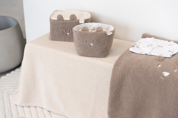 Ce lot de 2 paniers de rangement rectangulaires est idéal pour organiser les petites affaires de bébé avec style. Fabriqués en tissu teddy tout doux, ces paniers apportent une touche chaleureuse et cocooning à la chambre de bébé ou d’enfant.
