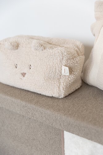 - Design : orné de petites oreilles et d’un visage d’ourson.