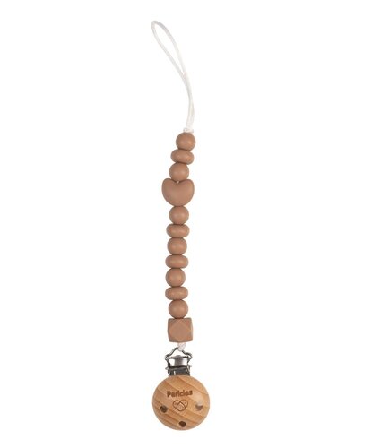 - Composition: Perles en silicone, cordon en nylon, clip en bois de hêtre et métal.