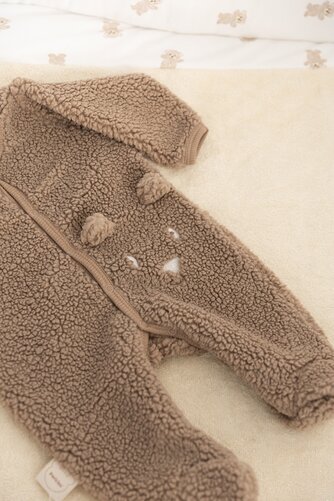 Deze zachte teddy pyjama houdt je baby lekker warm en comfortabel, zowel overdag als ’s nachts.
