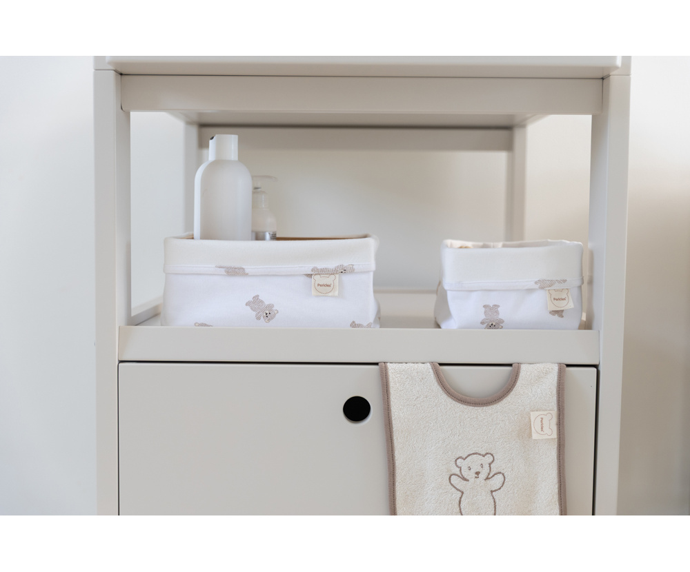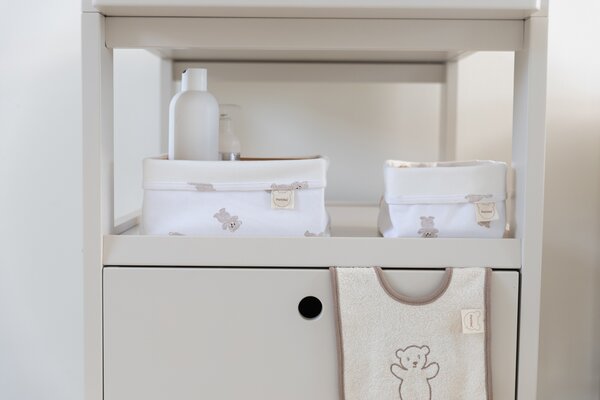 Vervaardigd uit heerlijke, zachte teddystof voegen deze mandjes een warme en knusse uitstraling toe aan elke baby- of kinderkamer. Ideaal om verzorgingsproducten, luiers, sokjes of klein speelgoed netjes en binnen handbereik te houden.